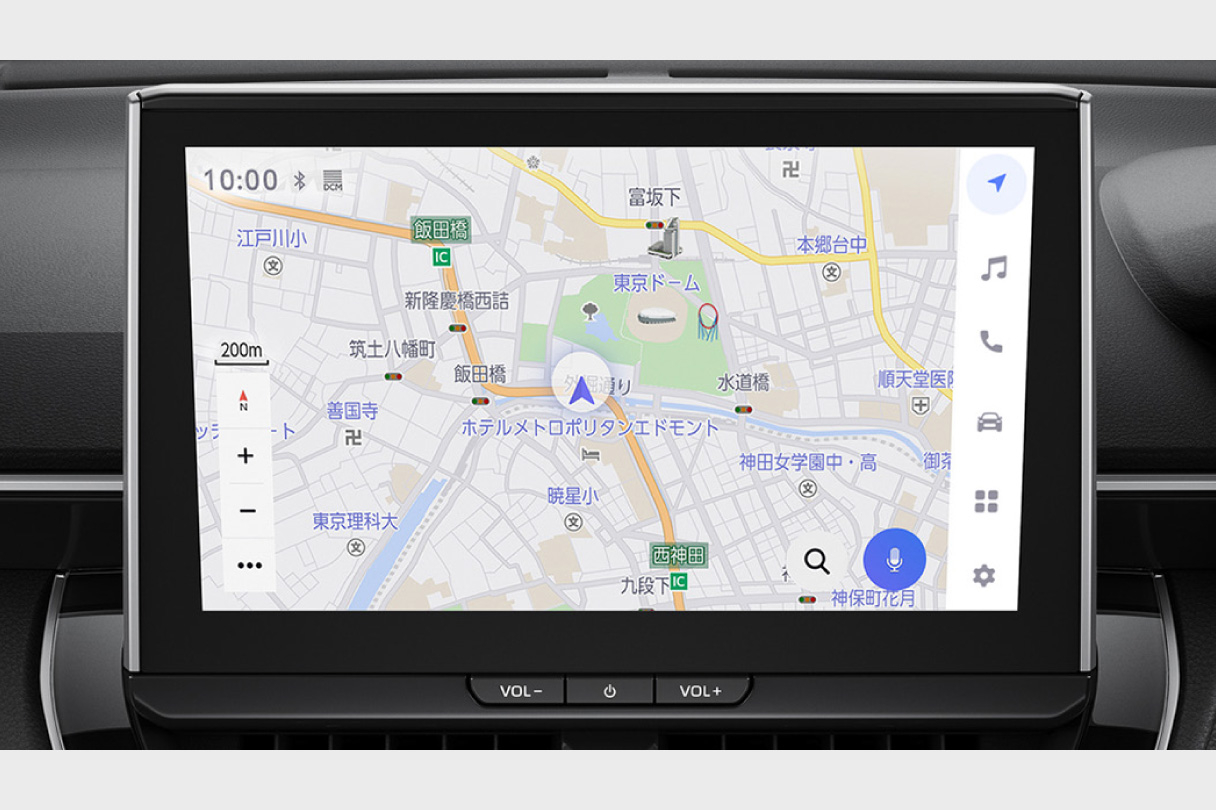 大画面10.5インチの大きく鮮明な地図と高コントラストの美しい映像がご覧いただけます。センター通信型コネクティッドナビの対応に加え、通信が途切れて万一保持する地図情報の外に出てしまった場合でも、続けてナビ機能が利用できる車載ナビ機能も搭載しています。