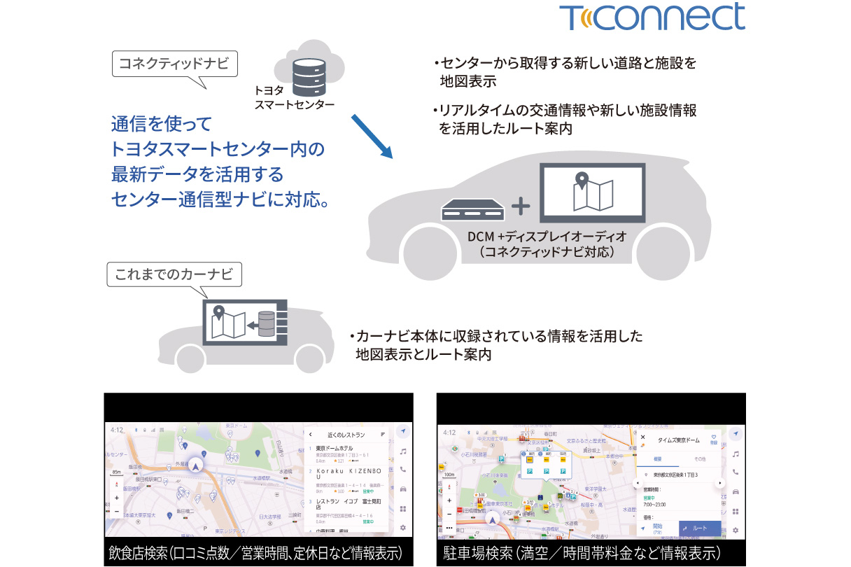 T-Connectの契約でセンター通信型のナビゲーション「コネクティッドナビ」が5年間無料