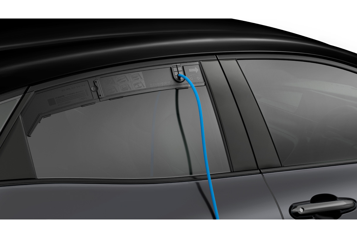 野外でも安心して給電できるよう、ドアと窓を閉めたまま電源コードが出せる外部給電アタッチメントを設定。車内への虫などの異物の侵入や、雨天時の水の浸入を予防します。