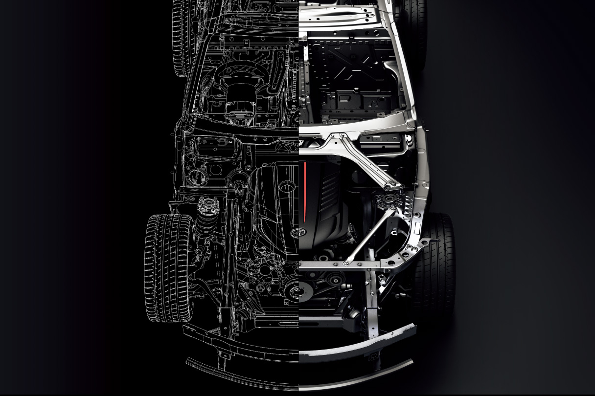 アルミとスチールを用いた骨格構造、そして異素材同士の接合強度を追求することで、軽量化とボディ剛性の強化を同時に達成。また、ブレースの追加によって高まったボディ剛性に合わせてシャシー性能を向上。ボディのねじれや微細な変動を抑え込み、常に正確な動きで路面を捉える足まわり、ダイレクト感のあるパワーフィーリングなど、サスペンションやドライブトレーンの性能を最大限に引き出します。さらに、スポーティな走行性能やステアリングフィールを高めるために、シャシー全体に細やかなファインチューニングを実施しています。